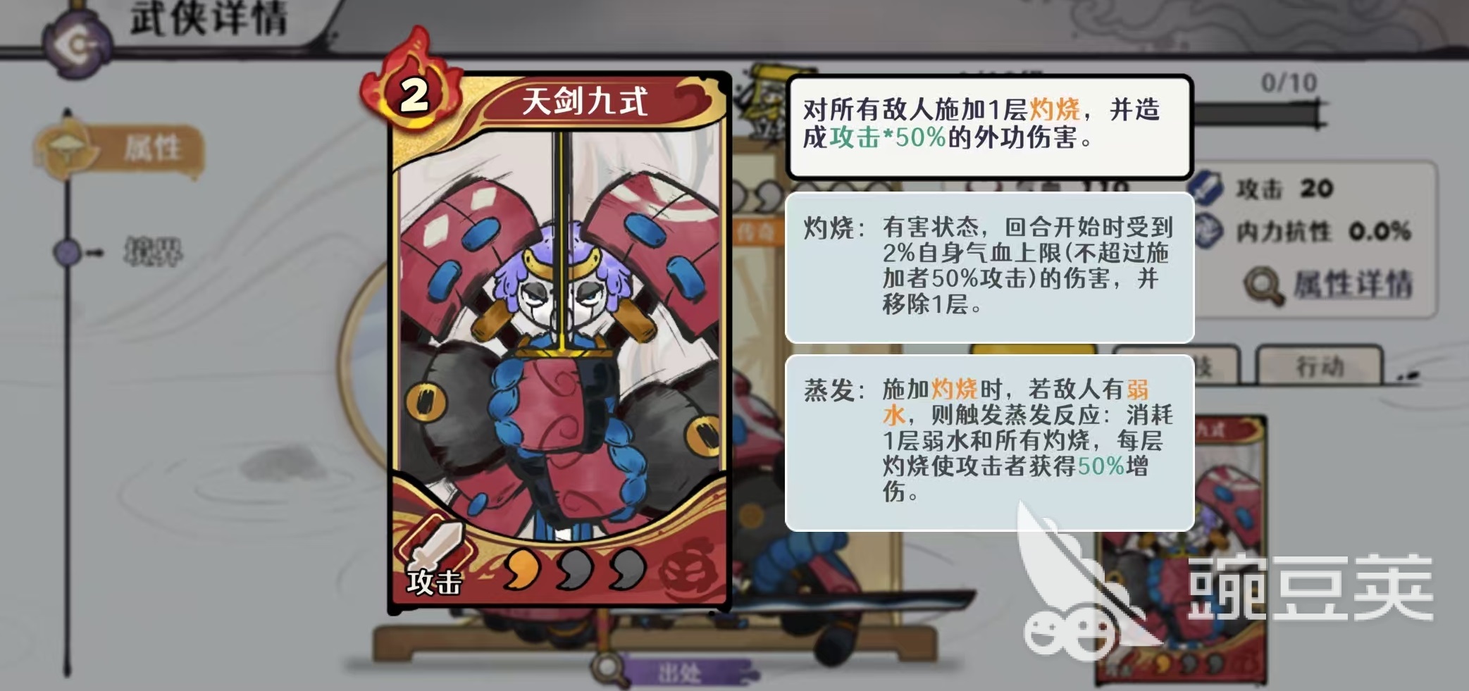 天道剑圣属游侠职业,主打高频多段外功伤害。核心武学【天剑九式】可对全体敌方施加一层灼烧状态,并附加外功伤害。灼烧为持续性负面效果:每回合开始时,目标承受相当于自身血气上限2%的伤害,并自动清除一层。若目标同时处于弱水状态,则触发“蒸发”反应——消耗一层弱水与全部灼烧层数,使天道剑圣获得增伤增益。其真气技能可自动释放,对当前目标造成外功伤害并点燃所有灼烧层数,实现真气回充与伤害倍化双重收益。整体定位为火系游侠主C,依靠灼烧循环驱动自动连招,形成高频率、高覆盖率的外功爆发链。