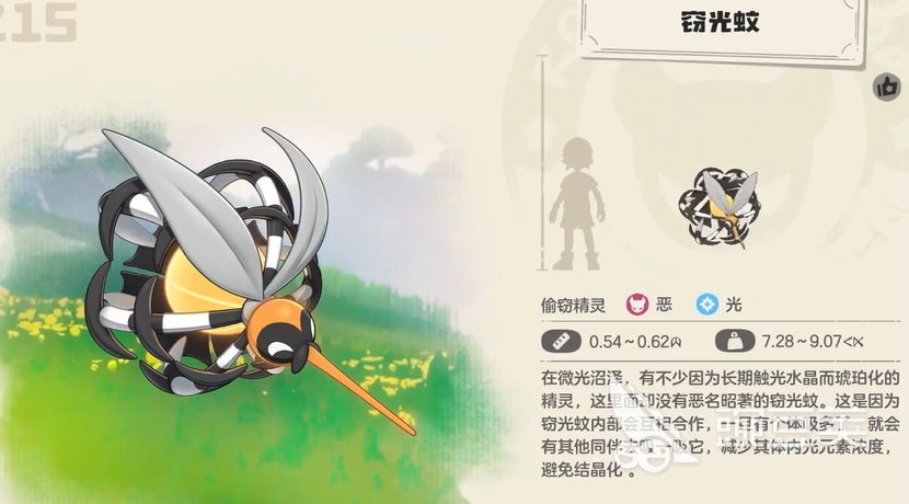 达成全部条件后,嗜光嗡嗡将进化为窃光蚊。此次进化带来质变:光感知精度提升至全新层级,并解锁被动技能“属性解析”。该效果使窃光蚊在使用光系技能时,依据对手已掌握技能的属性种类数量动态提升伤害——每多一种属性,光系技能基础威力增幅15%,上限为五种属性(即最高+75%)。此机制在对抗多属性配招阵容时优势极为突出。