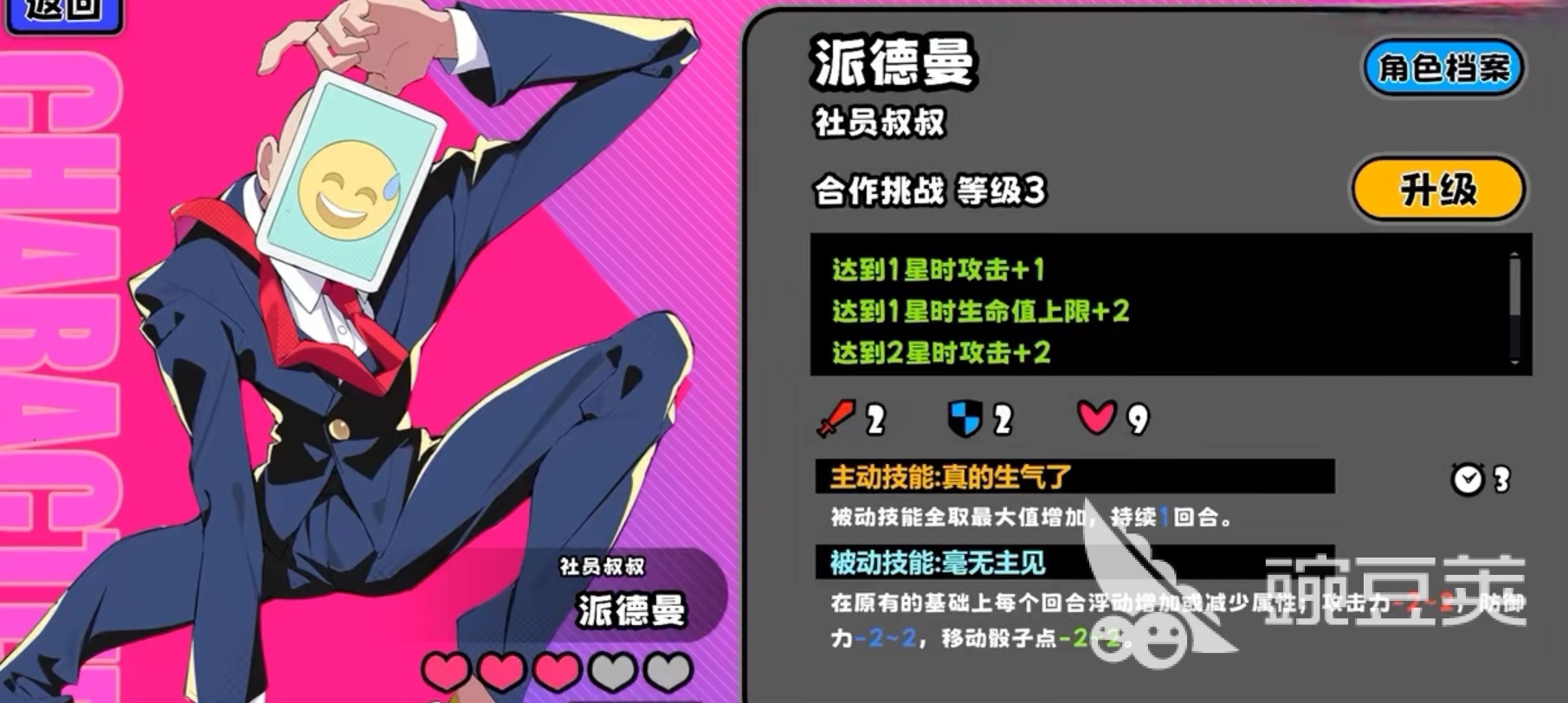 派德曼的主动技能名为【真的生气了】,释放后可临时提升被动技能【毫无主见】的属性浮动上限,持续1回合。该被动具有显著的动态特性:每回合开始时,攻击力、防御力及移动骰子点数均会在-2至+2区间内随机增减,形成不可预测但可引导的数值变化。这一机制强调玩家对节奏与时机的把控,而非单纯依赖固定数值堆叠。