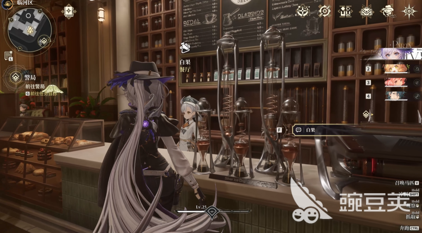 该咖啡厅位于白银之城临河区主干道中央,建筑风格为典型欧式立面,辨识度极高。进入后,正对入口的中央区域即可遇见NPC白果。与其交互无需复杂操作,靠近后按F键即可快速触发对话界面,节省探索时间。
