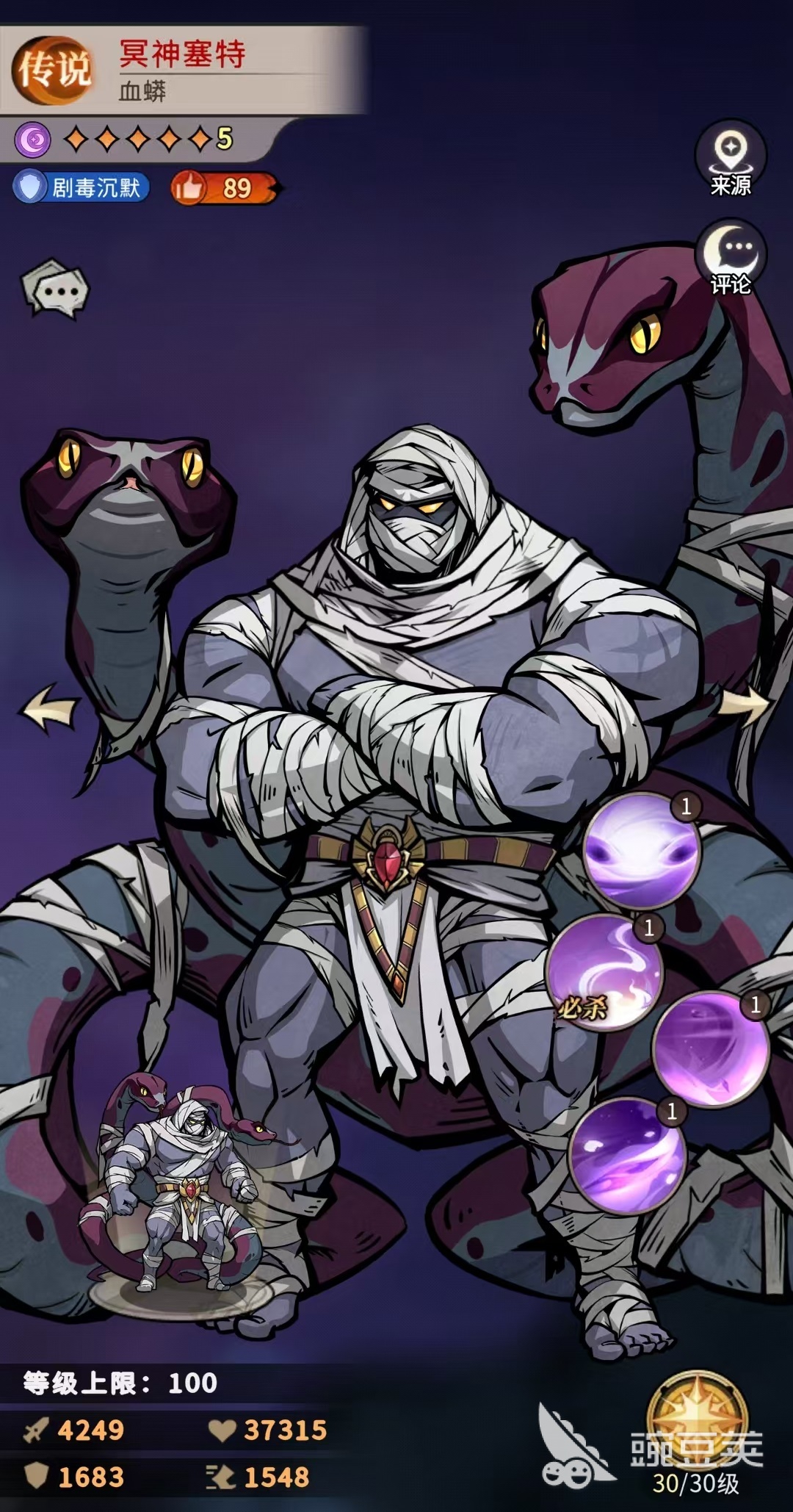 冥神塞特是《幻灵召唤师》中一位定位鲜明的传说级守卫角色,以高防御、高生命值著称,常被玩家称为“剧毒系核心前排”。不少新手在获取该角色后存在疑问:作为非光系的暗属性蛇灵,他是否具备长期培养价值?本文将从机制设计、技能逻辑、体系适配性及实战定位四个维度展开深度解析,帮助玩家理性评估其养成优先级。