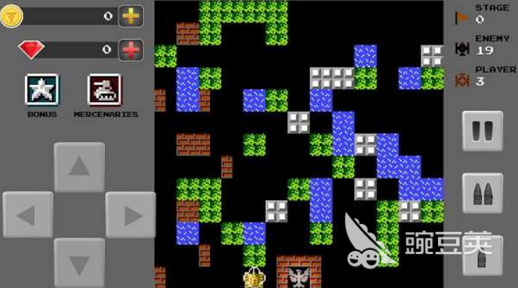 本作共设35个关卡,核心目标为击毁20辆敌方坦克,并严守象征基地的老鹰标识——一旦被击中即判定失败。支持双人同屏协作,黄、绿双色坦克可同步出击,虽存在误伤机制,但协同走位与火力掩护能显著提升通关效率。敌方单位包含四种类型:高速装甲车、高防重型坦克等,特性分明,需针对性应对。地图元素高度自由,玩家可在限定范围内自主布置砖块与河流,构建个性化战场布局。