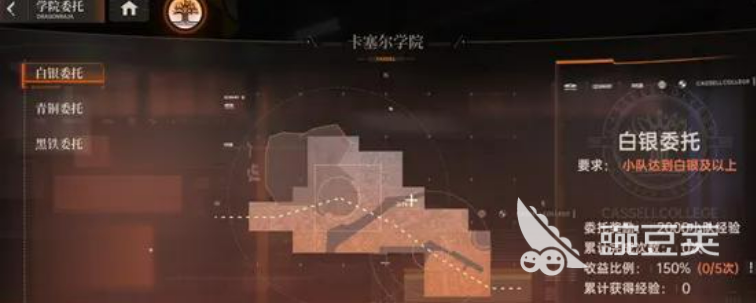 第三个板块是学院委托。同样是小队评级达到黑铁一的时候解锁。这个玩法需要消耗委托函来执行委托任务,完成之后就能获得历练经验。委托有不同的等级,等级越高给的经验越多,但是你只能接不超过自己当前评级的委托。