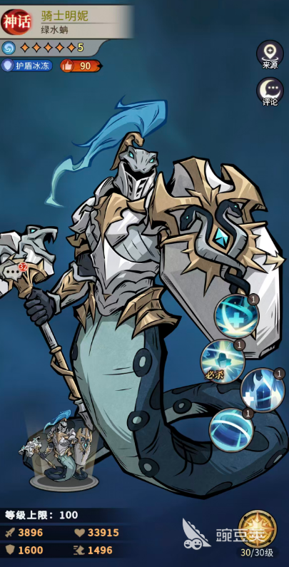 这里每个回合开始时,骑士明妮可以为自身以及攻击最高的友方单位附加【水盾】的防御,而且在提升之后变成骑士明妮受到攻击时,有100%的概率对敌人施加1层【寒冷】状态,而且每回合开始就可以为自身以及攻击最高的2名队友带来【水盾】防御,后面只要是携带【水盾】的单位受到敌人攻击,就会有50%概率对攻击者施加1层【寒冷】状态,【水盾】这个防御是可以吸收骑士明妮生命上限5%的伤害,所以他放前排也是有足够护盾可以用的哦。