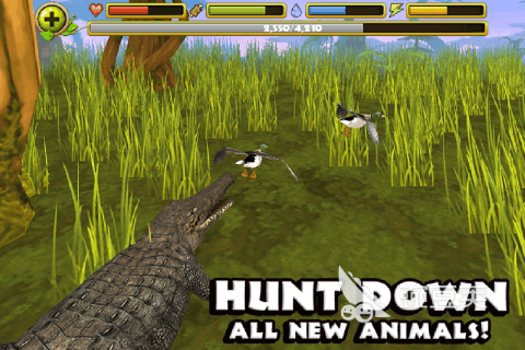 《鳄鱼模拟(免费版)》从鳄鱼的身长体态再到标志性的大牙,我们将感同身受的体现鳄鱼在野外生存的日常,游戏打造了一个岌岌可危的热带雨林场景,除了鳄鱼之外还模拟加入了多种不同形态的动物,为鳄鱼配备设计了各种凶狠残暴的狩猎技术,游戏还模拟了鳄鱼筑巢、抚育幼崽等玩法。