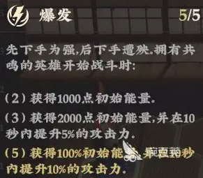 要想让这个团队的打击能力更强,可以先将整体阵容的”爆发“数值提升至5,直接获得初始能量和攻击加成,所有英雄在开战后即可释放技能;“洞悉”方面提升至3即可,可以直接增加暴击加成,还能够增加李玲龙的攻击加成,从而提高整体伤害。