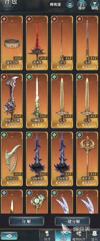 武器的选择方面,建议选用奥义伤害较高的武器,例如“炎龙牙”、“天光”、“野猪王之剑”、“春草之音”,并且选用“流火之环”来增加开场奥义伤害的储备,提升基础的攻击力和暴击倍率,使得自身在第一个回合时,就蓄满奥义伤害。