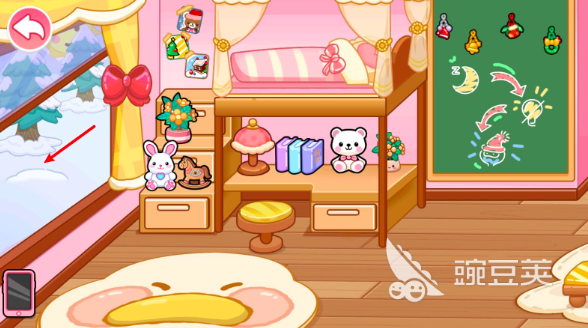 第二个风格的话,推荐大家可以设计圣诞主题,尤其是寒冷的冬季与这种主题格外适配哦,而且游戏当中打造的时间系统与现实一样哦,随着现实中的冬天到来,游戏当中窗外景色也会自动变成白雪皑皑的样子,此时玩家可以在房间内放上暖烘烘的鸭子地毯,挂上淡黄色的厚窗帘,以粉色系为主的公主床,整体来看还是非常温馨的。