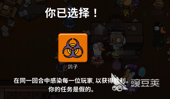 中立阵营里面要玩的话,比较推荐大家去玩鸽子,这个身份的技能效果是可以通过近距离接触来感染接近的玩家,只要让存活在场内的所有玩家都受到他的感染,中立阵营就可以压下鸭子以及鹅阵营单独获胜,而且整个对局里面感染过程是没有明显提示的,就是要大家隐蔽的接近目标,避免被察觉,不然也会容易遭到其他两个阵营玩家的针对,这并不是一个主动技能所以冷却时间是没有的,其中的感染方式就是为接触到其他的玩家就可以进行感染了,且全程可进行感染操作没有很多的限制。