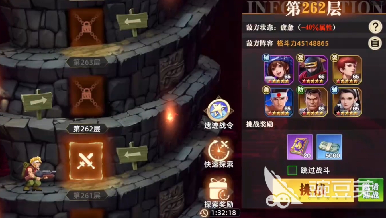 遗迹之塔中的战斗与常规的战斗没有太大的区别,玩家们可通过查看敌方阵容,来合理地排兵布阵,挑选能克制敌方的角色上阵作战,并且每层都有会不同的敌方状态需要玩家们去应对,比如敌人的状态为疲惫时,他们会减少40%的属性。战斗时,人们可开自动让角色自行发挥,也可直接在遗迹之塔界面选择跳过战斗,好让自己快速完成挑战,若遇到打不过的层数,各位更是能邀请助战来协助自己爬塔。