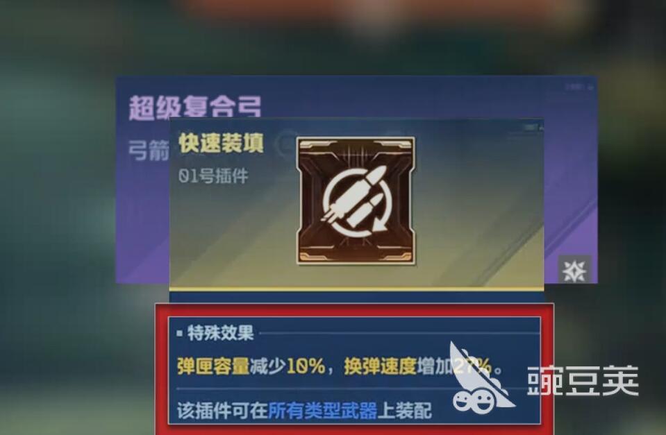 玩家在给他搭配配件的时候,通常情况下,要了解它的空机速度特别的慢,装填的周期也比较长,所以说玩家需要及时地缩短它换弹的时间,在这个时候,芯片就直接选择快速装填,这样的话就能够有效的避免它的不足,虽然说这种方式能够帮助玩家快速的提高超级复合弓的换弹的时间只是又出现了一个新的问题,就是它的射击节奏比较紧凑,如果说玩家想要连续命中的话,不仅仅在输出窗口方面需要维持一个较高的频率,并且在操作方面要格外的流畅。另外还会涉及到一个容错率的问题。