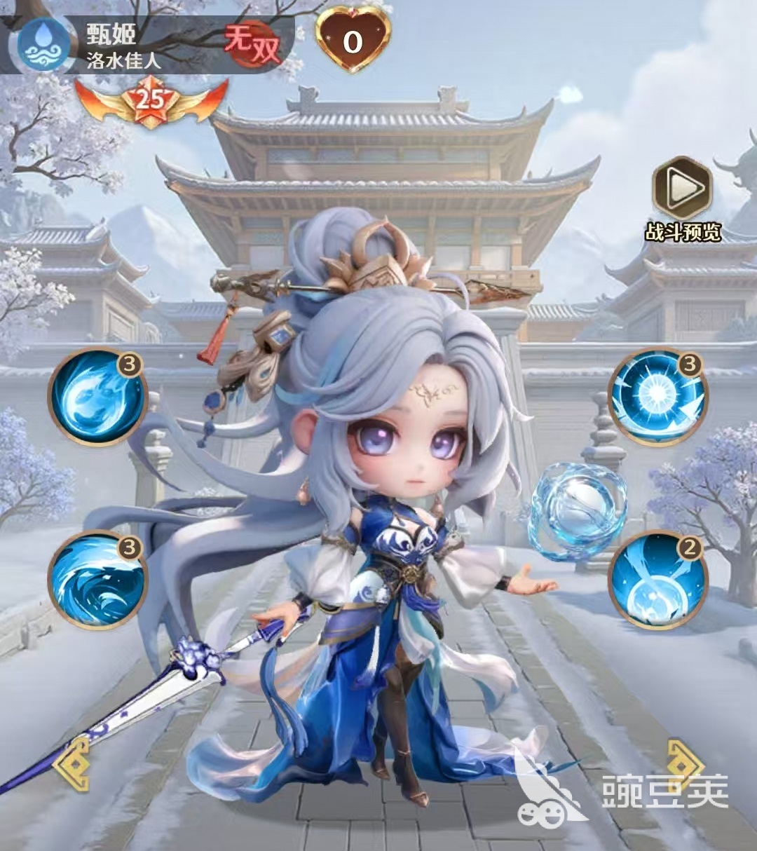 甄姬作为三国历史中极具人气的女性人物,在《格斗三国志》这款放置类卡牌游戏中被赋予全新定位——她是一名水属性无双武将,虽属三系普通无双品质,但实战表现突出,兼具控制、治疗与增益能力。本文将围绕甄姬的核心机制与阵容适配逻辑,为玩家提供清晰实用的养成与搭配指南。