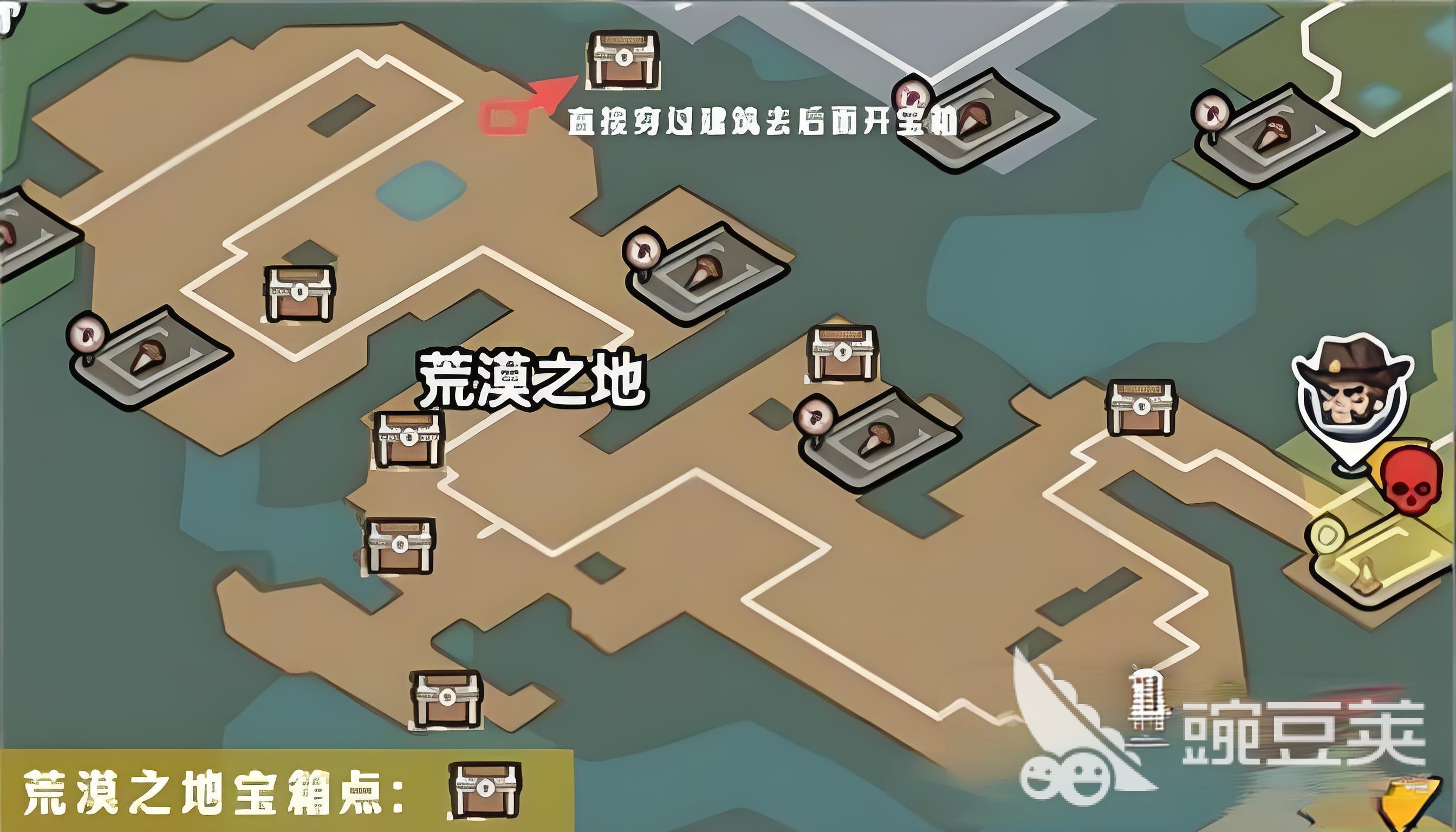 常规宝箱多位于显性地标附近,对观察力与地图熟悉度要求适中。首个宝箱定位点为地图中标注骷髅头图标的废弃建筑,抵达该建筑后沿正前方路径直行即可发现;获取后向左转向,前行一段距离再右转,即可在视野开阔的沙丘道路上遇见第二个宝箱。其余四个常规宝箱均散布于荒漠主干道两侧、残破工事内部及孤立岩体背阴处,建议开启小地图缩放功能,结合地形轮廓比对确认位置。文中配图已对全部6个常规宝箱落点进行清晰标注,玩家可依图索骥,逐个验证。