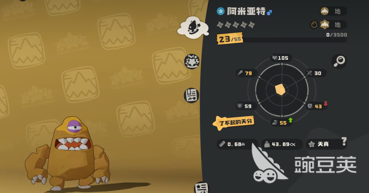 初始捕获的阿米亚特通常处于较低等级,技能池尚未展开,部分核心招式如“地震”“岩崩”“大地之力”等需随等级提升逐步习得。因此前期对战表现偏保守,输出与控场能力有限。但需注意:该精灵属于典型“厚积型”培养路线——随着等级攀升、技能树完善及形态进化完成,其双防数值、HP成长率及地系本系招式威力将实现跃升,最终成长为兼具坦度与反制能力的战术支点。
