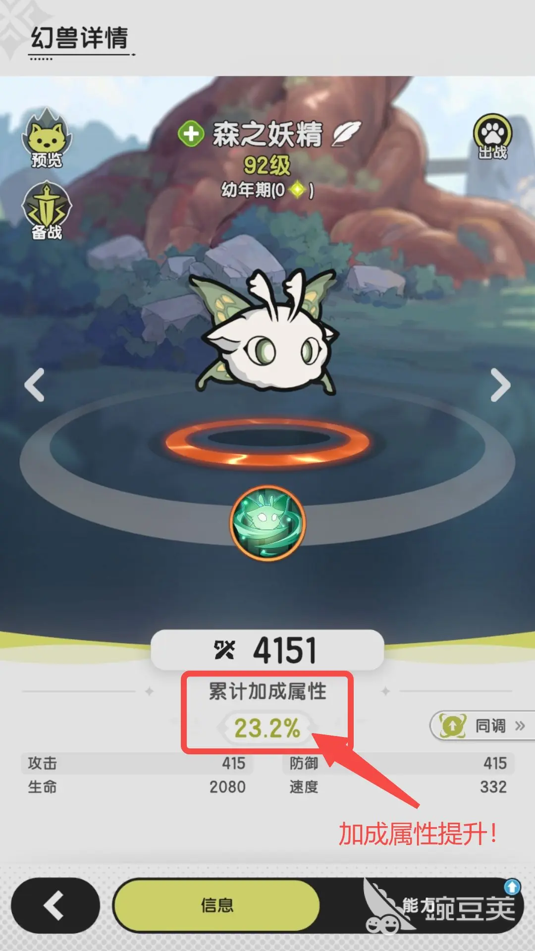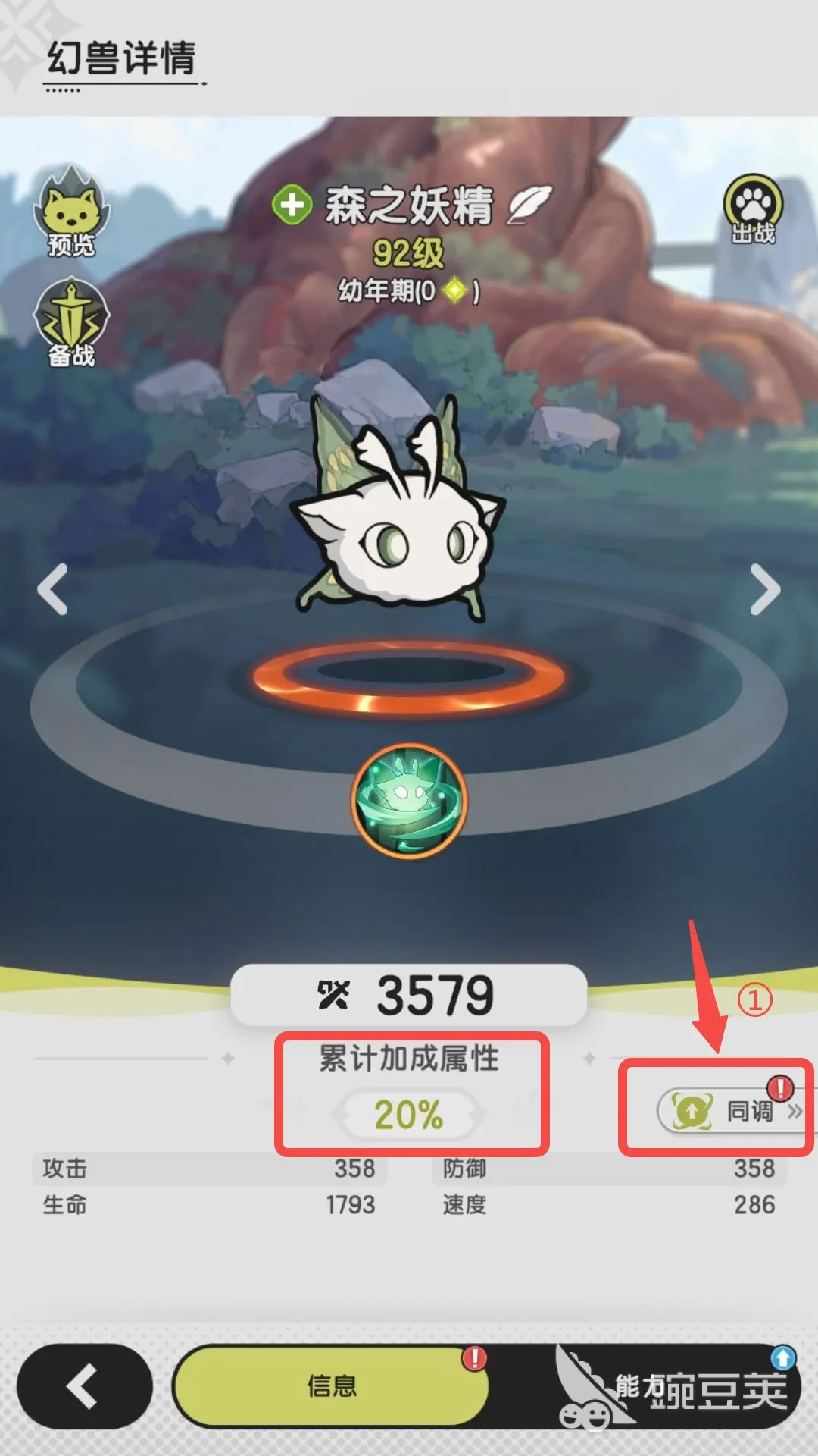 操作路径清晰直观:进入幻兽养成界面后,页面右下角将显示“同调”功能按钮;点击进入专属同调面板,即可选择目标幻兽并执行同调操作。每次同调成功,均会提升该幻兽的基础属性加成系数,原有累积数值随之动态上浮。同调等级越高,所需幻兽碎片数量越多,对应属性增幅也越显著。
