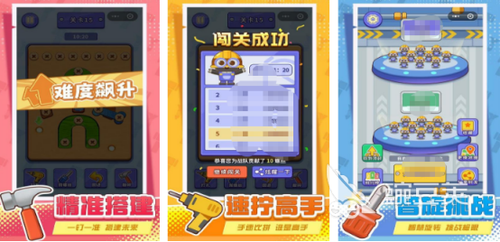 精心设计的关卡内容,每个关卡都有不同的任务要求,化身成为工匠的你,核心的任务就是通过合理移动螺丝的方式,将所有的木板全部拆除,这些木板纵横交错,都是由各种钉子组合而成。每个关卡中的任务要求都完全不同,比如在挑战关卡时,需要在规定的时间之内将所有木板上的钉子全部拆除,屏幕下方也会提供4种不同的辅助道具,让大家感受旋转的奇迹,小小螺丝却有大大的智慧。