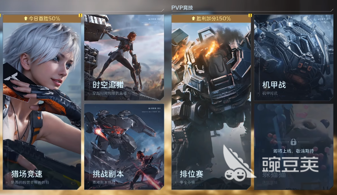 pvp模式里面有两种玩法,其中一种是机甲对战,另外还有时空追猎,大家可以根据自己的需求选择出适合自己的尝试,在这个模式里,两者的设定完全不同,虽然是pvp玩法,但是在机甲对战里面采用的并不是常规的对称竞技,每一局会设定16个角色,但会把角色分成两个阵营,其中四个角色会扮演机甲,另外12个角色扮演的就是最普通的人类,要在挑战的过程中利用各种枪械去攻击机甲,机甲同时也要利用较高的机动性去攻击人类,每次比赛分为四个回合,每个成员都有机会扮演,成为机甲参与挑战,除了灵活的走位之外,还要合理利用游戏里的地图资源,让人类角色可以顺利抗衡机甲。