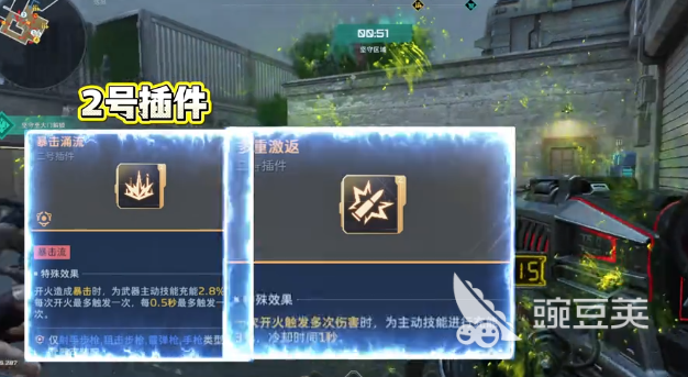 想要发挥死亡猎手的威力,插件的选择很重要。1号插件选择狂暴装填,这一个插件的核心作用就在于暴击时能够迅速的恢复子弹。配合死亡猎手的高暴击特性,能杜绝弹药耗尽的情况,给无限子弹打下基础。2号插件可选择暴击涌流以及多重激反。两者的核心功能都是可以迅速的加快技能的恢复速度,前者可以通过暴击回复能量,后者主要是叠加能量,大家可以根据个人的战斗风格去做出选择。3号插件应该选择联动提升,可以给整场游戏带来38%的暴击率加成。