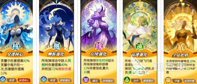 鉴于输出高度集中于兰,祝福选择应优先强化其伤害上限与队伍整体容错。穿透系推荐“穿透核心”与“侧斩强化”,进一步放大侧向命中收益;守备系建议选用“正面强化”,通过击退扩大安全距离,并激活全员护盾提升坦度;治疗系适配“高速强化”(提升弹球飞行速度,增加碰撞频次)与“边界强化”(直接提升弹球基础伤害);碾压系则推荐“存续强化”,延长弹射持续时间,提高多段命中概率并触发全员增伤效果。