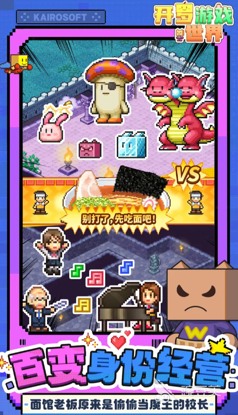 开罗游戏世界作为开罗系列全新力作,延续标志性的复古像素美术风格,构建了一个融合模拟经营、角色扮演与社交互动的开放世界。玩家可在其中自由切换多重身份——从统筹全局的市长,到钻研秘方的汉堡店店主,亦或是深入地牢挑战外星怪物的冒险者,每条成长路径均拥有独立任务体系与玩法逻辑,带来层次丰富的沉浸式体验。