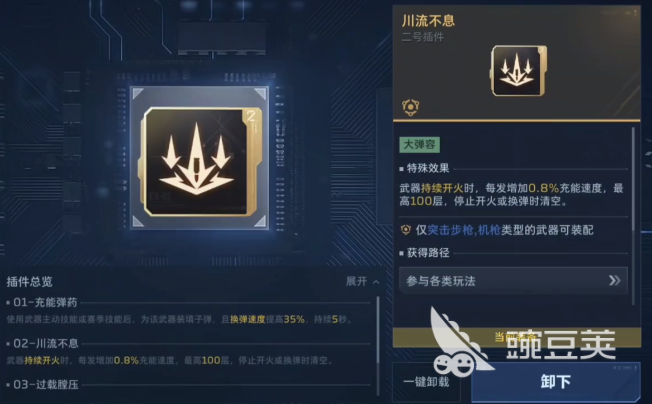 一般的游戏里依靠的都是枪械基础的能力,但在对战的时候那个成员的战斗需求不同,需要的枪械也会有所变化,单纯的更换枪械,无法满足所有的对战场景,这时候就可以依靠插件,每个插件都会有对应的作用和属性,通过调整插线就能让枪械拥有对应的能力,,最推荐玩家使用的就是充能弹药,插件能适用所有枪械,并且获取难度也会比较低,在挑战过程中触发主动技能或者是特定的技能之后,插件会自动帮助枪械填充子弹,并且换弹速度也能提高35%,每次都能持续5秒钟的时间,相当于只要释放技能都可以回填子弹,不用担心,更换子弹浪费时间。