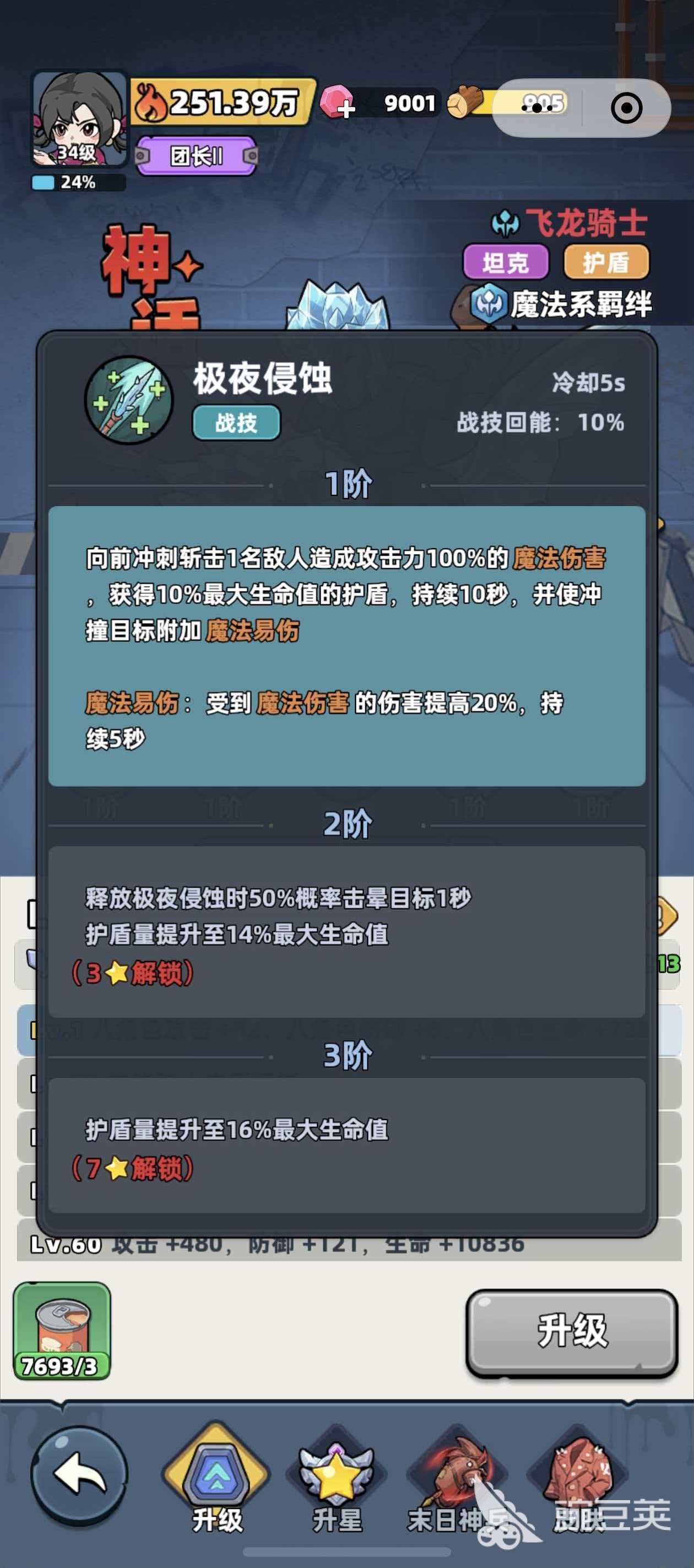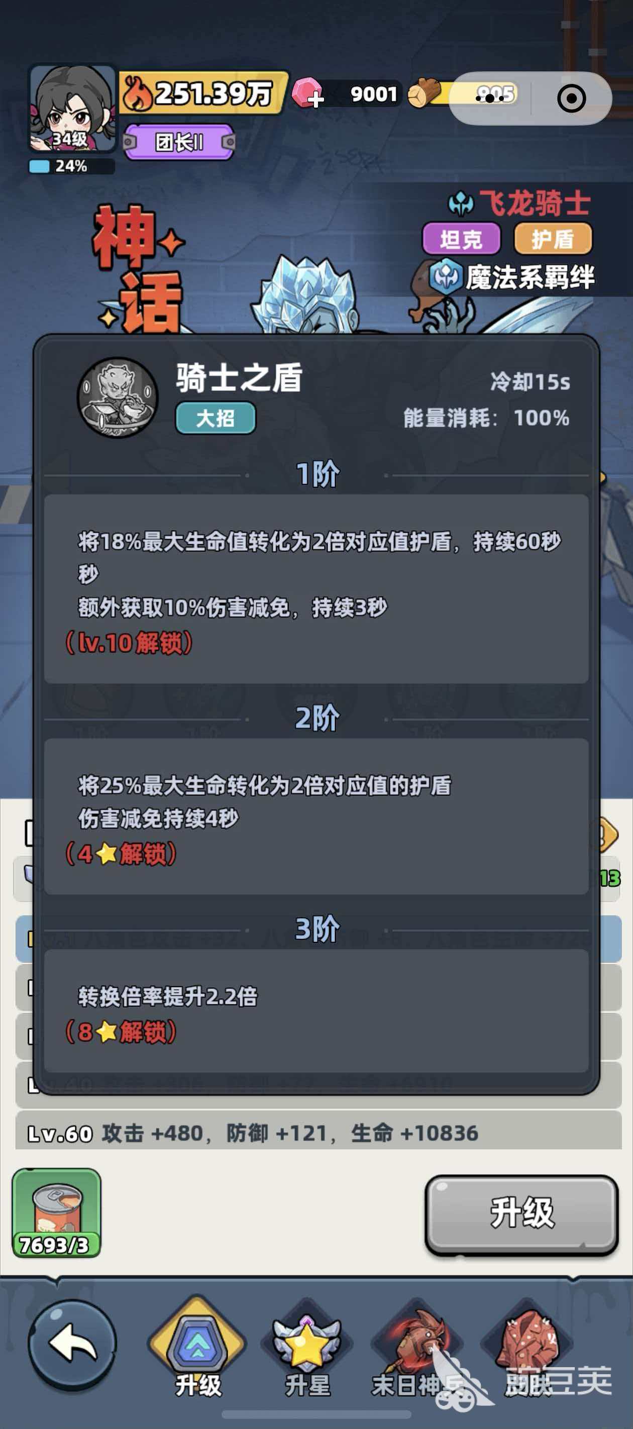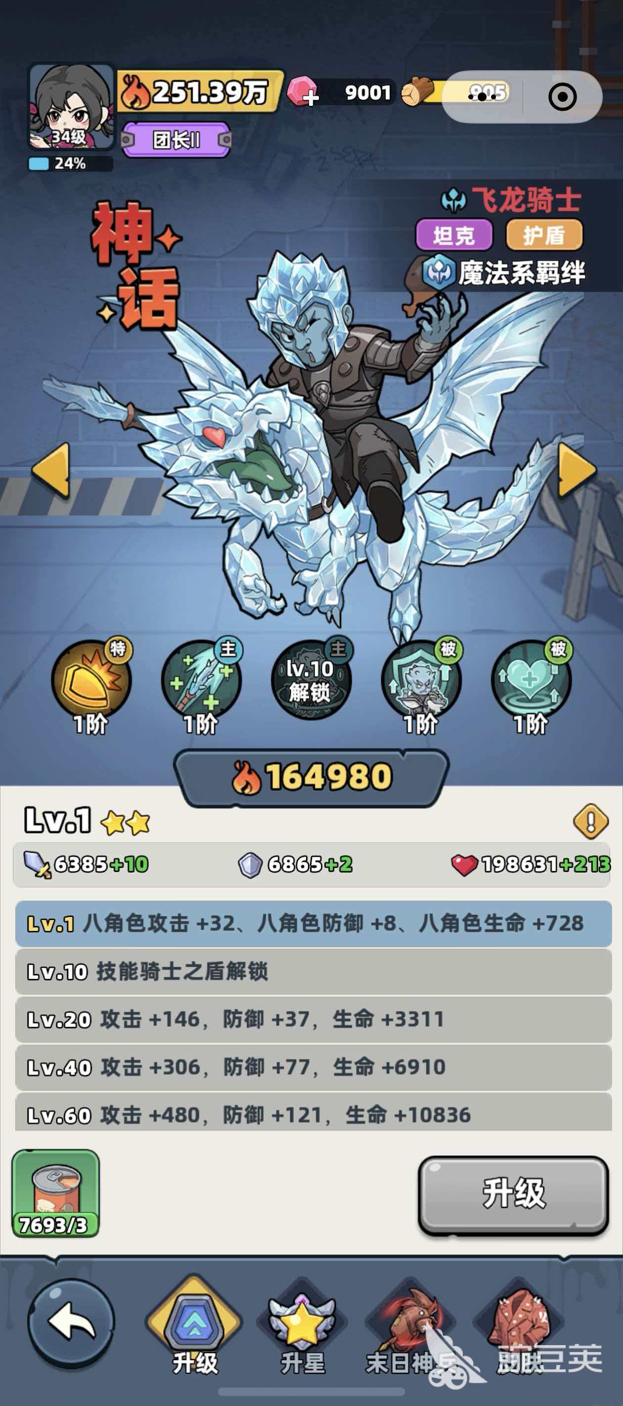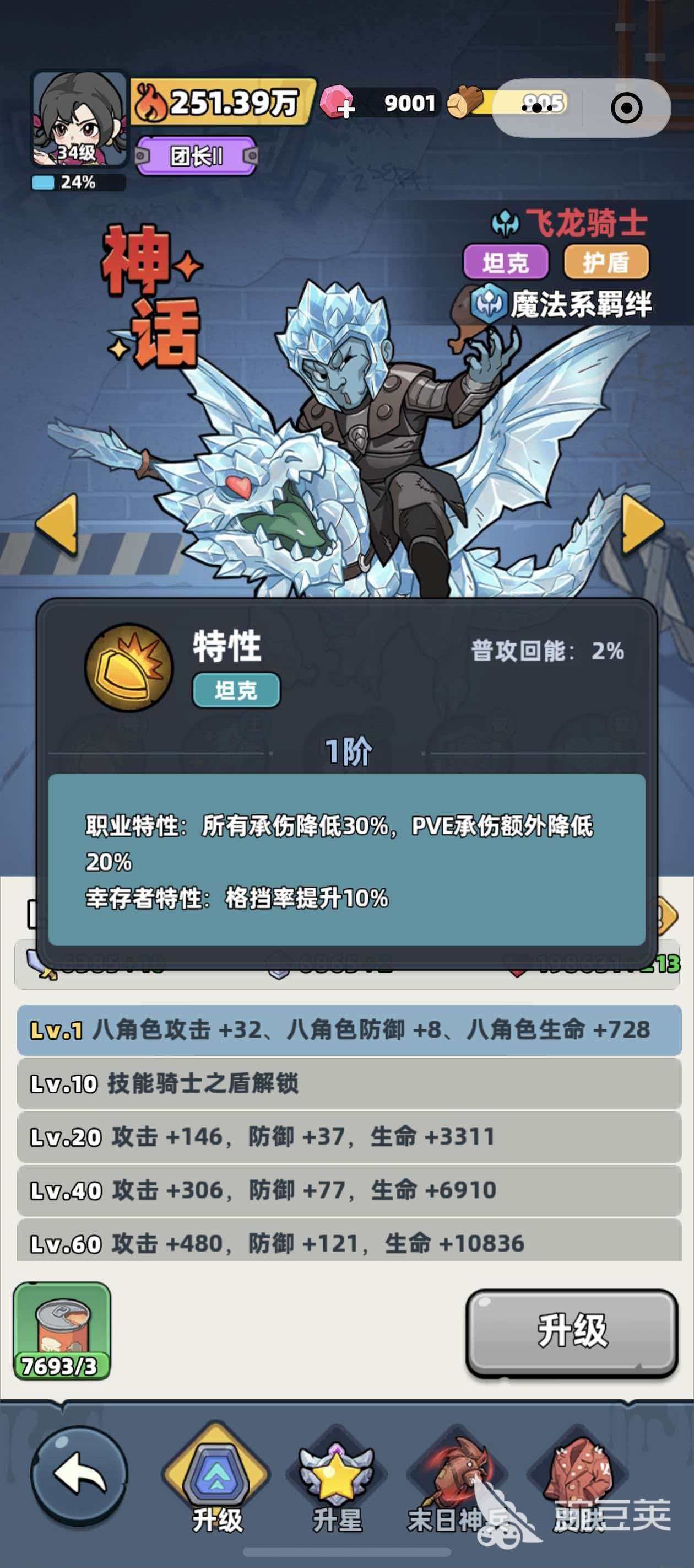 飞龙骑士属于神话品阶,职业定位为护盾型坦克,核心羁绊归属魔法系。实战中,该英雄可降低自身所受伤害的30%,且登场即永久提升全体队伍10%格挡率,是前排承伤与团队保护的关键支点。