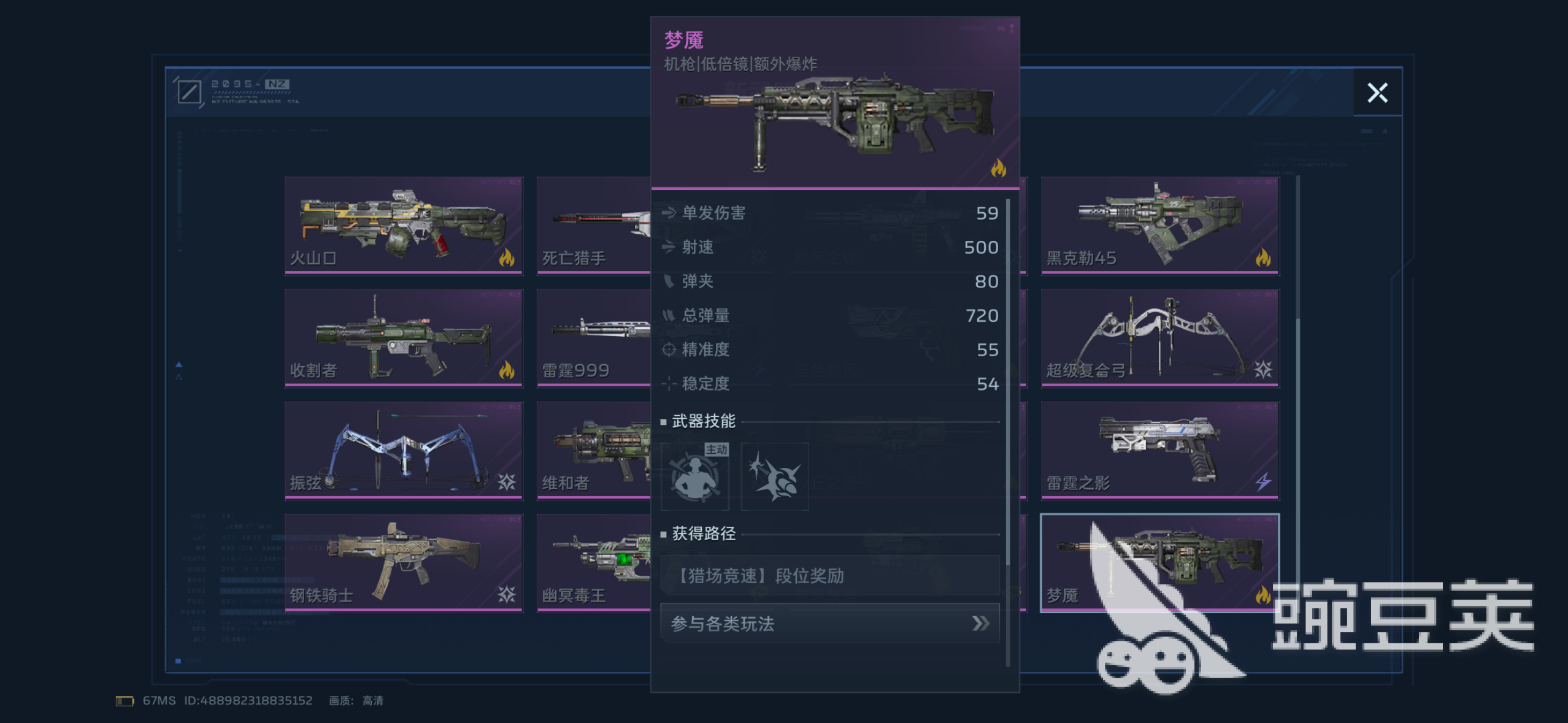 梦魇属于史诗品质武器,获取方式多样:玩家可通过蓝色跃迁秘藏直接抽取,出率较高;若未获得,亦可在猎场竞速模式中,依据结算段位领取,段位要求宽松,新手友好。该武器核心机制包含主动与被动双重技能体系:主动技能提供高额增伤,并支持最高12层伤害叠加;被动技能则设定为累计命中20次后,额外触发一枚飞弹。这一组合显著强化了中远距离持续输出与爆发衔接能力,在塔防防守及高难度副本攻坚中表现尤为突出。