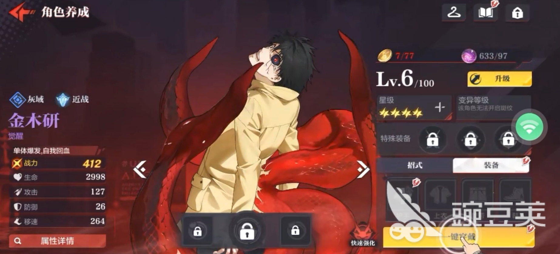 第一位:金木研(不灭阵营|近战输出) 作为高生存压力下越战越强的典型代表,其核心机制围绕“低血高伤”与“免控突进”展开。主动技【狂刃血宴】消耗尾赫形成高速位移,锁定敌方最高攻击力单位并触发范围溅射,释放全程免疫控制;该技能伤害随自身当前生命比例降低而提升。【碎空裂抓】为后置突袭型技能,命中目标后沿路径造成高额物理伤害,并为每次命中额外积累50点怒气值,显著提升连招频率。被动【半赫者】提供双属性加成,同步强化续航与爆发能力。