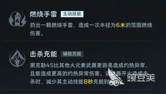 黑克勒45星蓝破晓定位为高机动性冲锋枪,基础属性突出短距压制能力。其换弹速度显著优于同类型武器,配合轻量化枪身设计,大幅强化跑打与转点响应效率。主动技能“燃烧手雷”可对半径6米范围内敌人造成持续范围伤害,并附带灼热异常状态;每次击杀目标均可缩减技能冷却8秒,形成高频控场与清怪循环,在副本开荒、资源点争夺等场景中表现尤为突出。