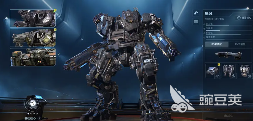 暴风机甲定位为均衡型机体,兼顾输出效率与生存能力,适配多种战场环境,是新手建立操作手感与节奏感知的理想起点。其武器系统支持机枪、冲锋枪及步枪三类主武器切换,各武器在基础伤害、射速稳定性、弹匣容量等维度存在差异化表现;战术挂件则直接关联主动技能释放逻辑与实战效能,需结合战局需求动态配置。