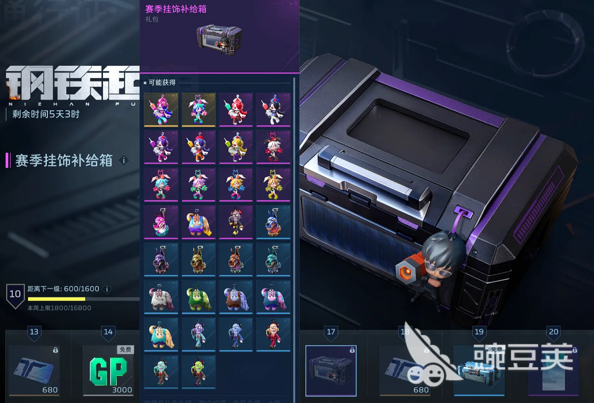 除核心武器外,进阶通行证还设置多维度辅助型奖励。达到指定等级后,玩家将周期性获得赛季挂饰补给箱,内含传说、史诗及普通品质挂饰,支持通过合成系统定向打造目标外观。同时,在若干关键等级节点还可领取传说钛金跃迁秘藏与普通钛金跃迁秘藏,其中传说秘藏有概率开出飓风之龙等永久传说级武器,普通秘藏亦可稳定获取史诗级或限时武器。此类随机产出机制大幅提升了长期养成过程中的资源容错率与目标达成确定性。