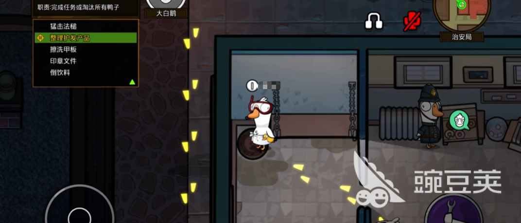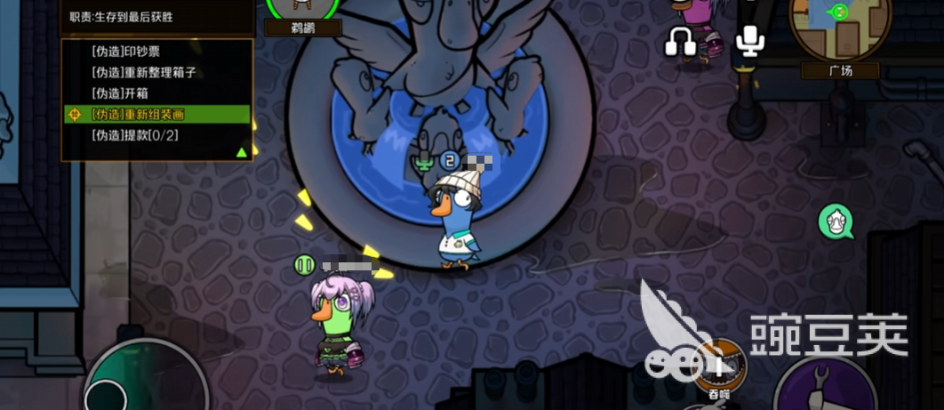 广场区域设有“下毒”任务:鹅阵营需在倒计时结束前抵达最右侧红灯区,完成水泵换水操作,方可解除中毒状态。若超时未完成,将直接导致鹅方任务失败。该任务具有高暴露风险,鸭子可长期蹲守红灯区周边,伏击单独行动的鹅玩家,实现高效减员。