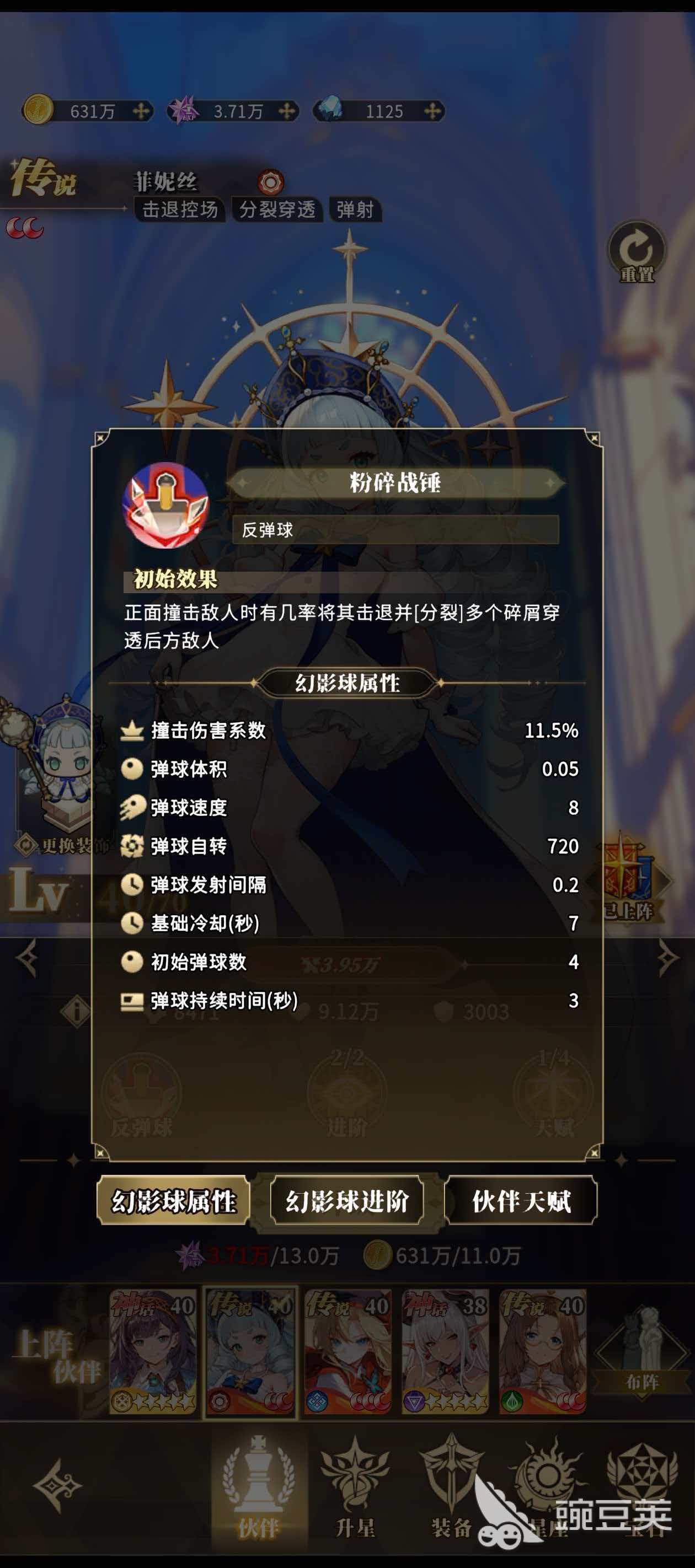 菲妮丝的幻影球名为粉碎战锤,当粉碎战锤正面对敌人进行撞击的时候,该技能就会有可能将敌人给击退并且球体分裂成多个碎屑穿透后面的敌人,进阶以后技能造成的伤害会提升60%,战锤在正面撞击敌人时还会附加上40%的冲击伤害。