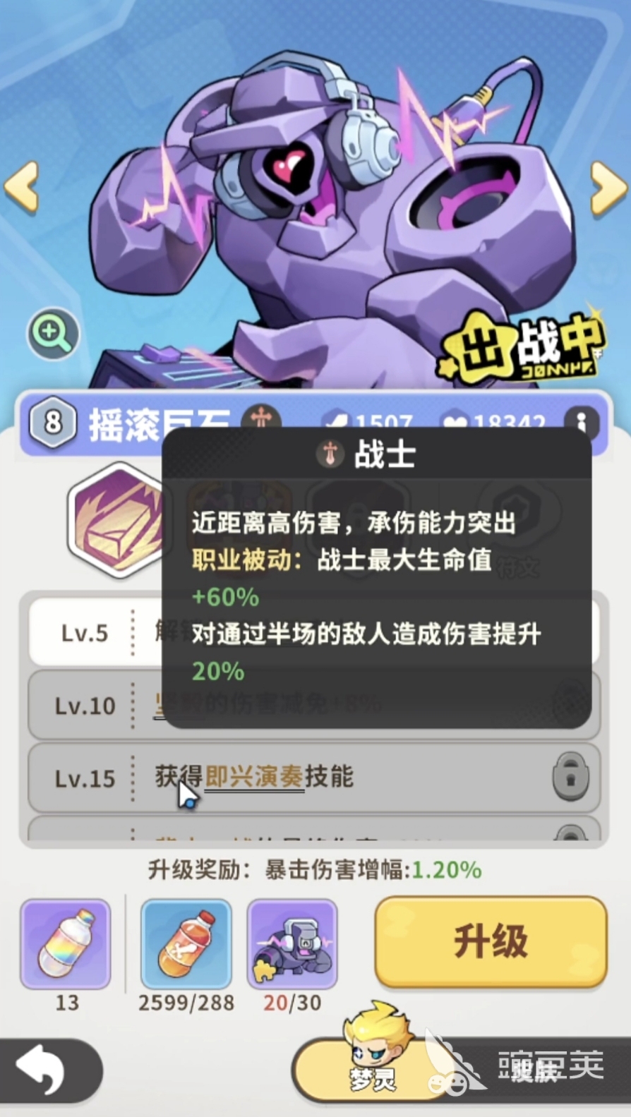 在策略性的玩法方面,比较依靠于职业阵容的搭配,在这里为玩家建议在组队时可以让他和战士搭配,比如摇滚巨石,让他成为前排起到承担伤害的效果,后羿和寒冰射手作为远程进击输出的角色,放置在局中后排的位置,使用游戏里面三选一的加成体系,玩家需要先行增强主要的输出力角色,因为这些角色一旦爆发,能够带给整个团队增益的效果。