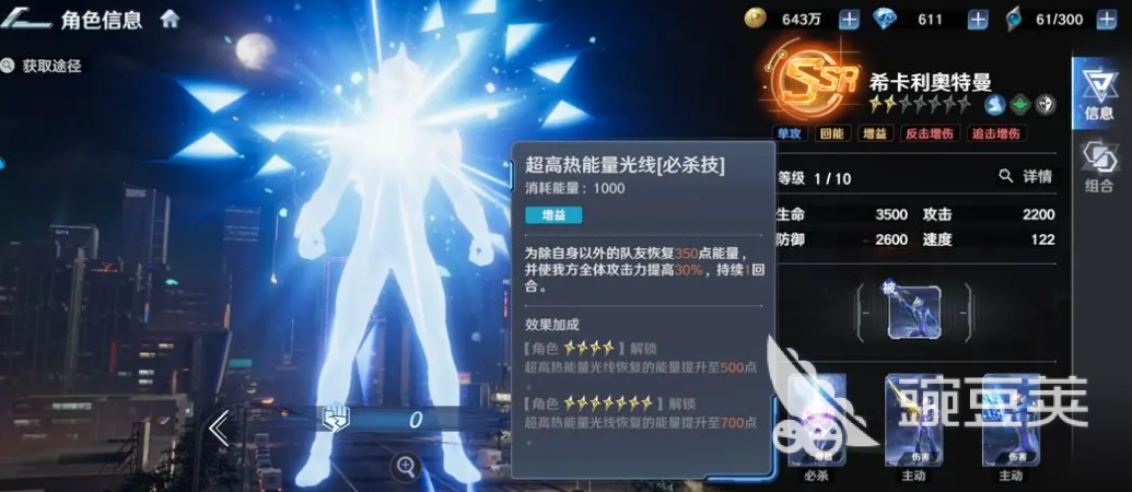 希卡利在这里的话,其实如果大家抽不到,作为一个战令角色,很多玩家都是直接在战令系统里面购买获得的,奥特曼光之战士希卡利奥特曼怎么样在把这个奥特曼拿到手之后,大家就可以获取到他身上的各种输出能力啦。