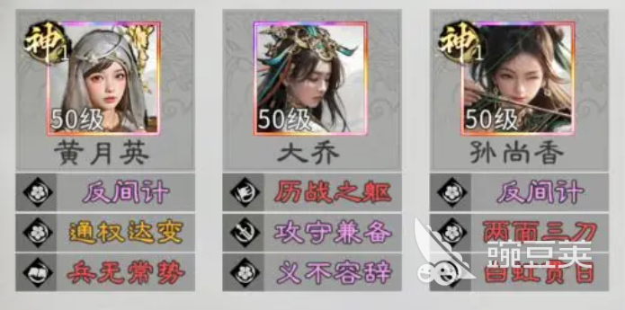 另外大家还要注意,这里三个女角色在进行搭配的时候,除了黄月英可以进行替代之外,小乔也是可以替换在其中的,这样大乔跟小乔之间一起上场的话,也可以保证阵容成型的速度,在这里造成追击的话其实在其中,利用孙尚香的枭姬被动技能也可以提升足够的暴击能力,这里只要是被对面给施加一定的负面状态,孙尚香就可以带来这样的暴击加成,另外在她主动技能有一定追击次数的时候,发动的整体核心思路就是可以利用枭姬技能增强我方的发动回合,大乔跟小乔在这里同样都是带有负面状态施加能力的,所以在这里大乔跟小乔的辅助也是非常容易跟孙尚香搭配整体的一个阵容。