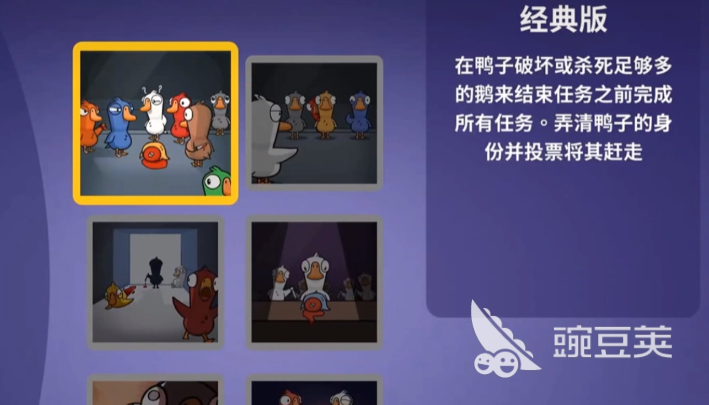 在经典模式里系统会随机给玩家分配不同的身份,接着就要遵循这些身份的任务,鸭子阵营要在游戏里悄悄杀掉鹅阵营的角色,鹅阵营要通过投票的方式找出鸭子,另外还会设置中立阵营,要按照这个阵营每个角色的目标达成任务,在这种模式下,每一个玩家都能了解到这些阵营的关系,以及每个角色的操作,最少支持5名成员一起挑战,最多支持16名成员,新手可以挑战这个模式。