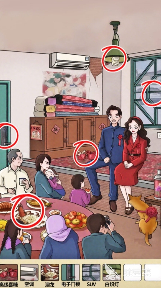 在经典找茬类游戏中,核心机制是将与画面背景时代、风格或逻辑明显冲突的物品巧妙融入图像中,玩家需通过细致观察找出全部异常元素。其中,以80年代生活场景为视觉基底的找茬作品极为稀缺,而目前可查证的代表性产品仅有一款——《年代找茬王》。