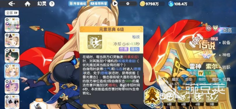 秘技元素恩典,让索尔在元素队里的地位变得无可替代。触发元素反应之后,会随机给队友施加祝福类增益,同时雷光震击能打出大范围伤害,并且附带感电效果。更厉害的是,这个技能有100%的生命转化,能持续给敌人造成伤害的同时,保证自己的续航能力。这种又能打又能抗的设计,让索尔成为了元素队当之无愧的核心输出位。