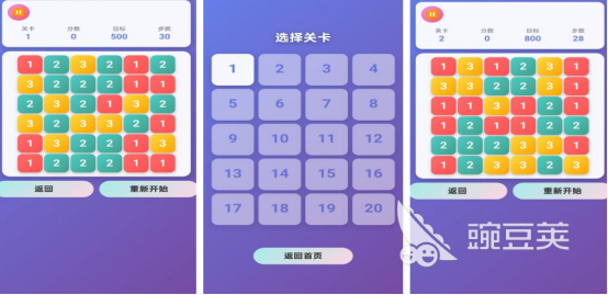精心设计的20个关卡都有不同的难度挑战,从最简单的6×6网格,再到最高难度的13×13网格,开局之后将会看到拥有不定元素的数字方块,大家要仔细观察,通过点击的方式就可将横向或者是纵向相同的数字快速消除,每次消除的数字越多,获得的分数也会越高。在关卡开始之后,屏幕最上方也会看到具体的剩余步数或者是目标的分数。看似整体的玩法很简单,但是必须要仔细动脑。