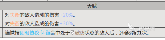 佩丽卡天赋系统也会拥有优势,歼灭协议随着等级的提升,对于失衡的敌人就可以额外的造成20%~30%的伤害。让它成为失衡体系核心的输出点,另外,循环协议更能体现出战术巧思,连携技能在命中破防状态的敌人之后,就可以额外的弹射一次。可以迅速的提升技能的覆盖范围,还有资源的利用效率,在群战的过程中就可以发挥超乎寻常的效果。技能组的设计就可以让它有单体爆发,还有群体压制。召唤电磁能量更是从天而降,可以造成范围性伤害,还可以带来电磁附着。