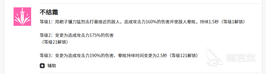 另外克拉拉在技能二效果上面可以带来不结霜的能力,此时是可以带来攻击能力的招式,利用这个不结霜,克拉拉可以利用自己的镰刀作为武器,快速的攻击目前离她最近的一个敌人,接近这个敌人进行输出的时候,造成的攻击能力会有160%的伤害数值,其中带有的控制是眩晕的能力,持续时间只有1.5秒的时候,大家就要注意后期快速的其他的技能使用才会更好,最强的时候是不结霜的技能强度达到等级3,那么此时眩晕的时间会更长一些,可以达到2.5秒。