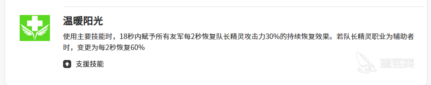 最后就是克拉拉在使用自己支援技能的时候,会有一个温暖阳光的被动,也就是团队的增益技能可以触发,触发这个技能的时候,她持续的被动效果有18秒时间,在此时可以赋予所有的队友恢复队长效果身上30%的持续治疗,当然如果是克拉拉作为队长的话,那么这里是可以为同为辅助者的角色,带来每2秒60%的一个恢复,所以在此时克拉拉带来的全队生存机制是非常高的。
