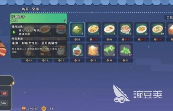 作为镇内少数专注食物类资源的固定商铺,蓝月亮驿站提供两大核心服务:一是出售基础食材(如面粉、鸡蛋、糯米等)及成品料理(如粽子、蛋炒饭、南瓜汤等);二是支持堂食——玩家可直接落座,与店主NPC对话点单。值得注意的是,所有可食用道具均附带实际游戏效果。例如,食用粽子后可在一定时间内持续恢复体力值,显著提升伐木、采矿等体力消耗型活动的续航能力。