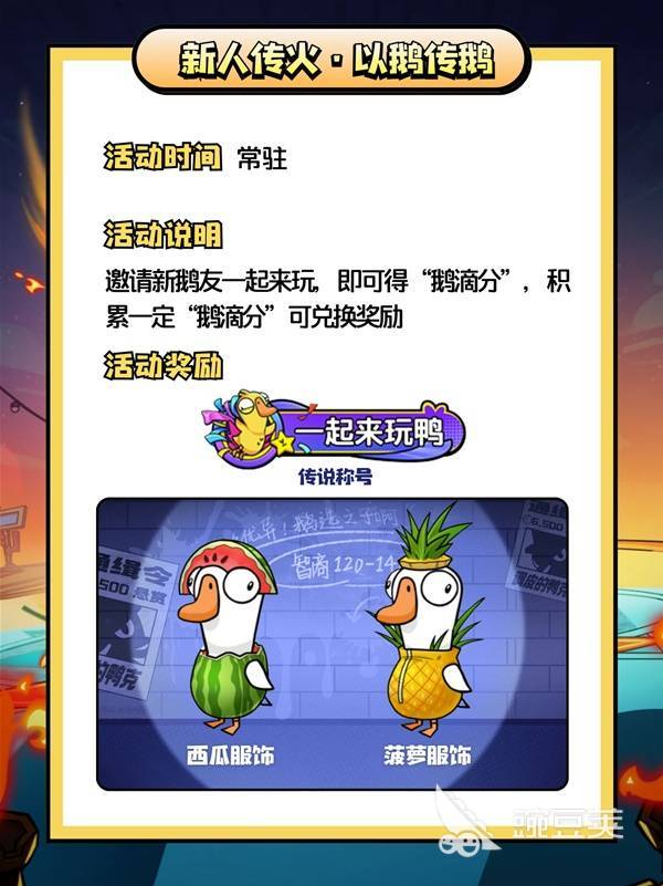 长期运行的常规活动聚焦用户成长与社区拓展。例如“新人成长礼”通过完成基础任务分阶段发放道具与外观;“游艺城奖励”则围绕日常小游戏互动积累积分兑换资源;而“新人传火以鹅传鹅”鼓励玩家邀请好友组队匹配,成功邀请后可解锁限定称号及主题服饰,强化社交传播属性。