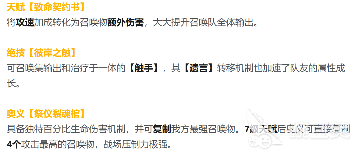 丝碧莫并非传统意义上的治疗或增益型辅助,其战斗定位高度依赖技能协同与成长路径设计。其天赋可将自身攻击速度转化为召唤物基础伤害,从根本上缓解召唤流派中后期输出疲软的固有缺陷。主动绝技生成的触手单位兼具持续伤害与群体治疗功能;而独有的“遗言转移”机制,可在单位阵亡时将其部分属性永久转移至存活队友,实现战损转化与战力滚雪球式提升。尤为关键的是,当圣女晋升至七级天赋后,奥义可一次性复制四只高阶召唤物,彻底改写团队作战节奏与上限。