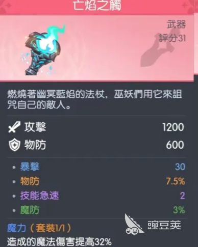 亡焰之触:这等同于是法师毕业级的选择,可以带来1200点高额攻击加成,还有3%的魔法防御,还有7.5%的物理防御。让他在面对物理性伤害,还有魔法伤害时,就会具备基础的生存能力。30点暴击属性更是可以满足输出机制,可以迅速的提升暴击率,让灼烧还有诅咒的效果拥有更加出色的优势。这一个套装还会提升32%的魔法伤害,因此就等同于给所有的技能都带来了一个增伤buff。