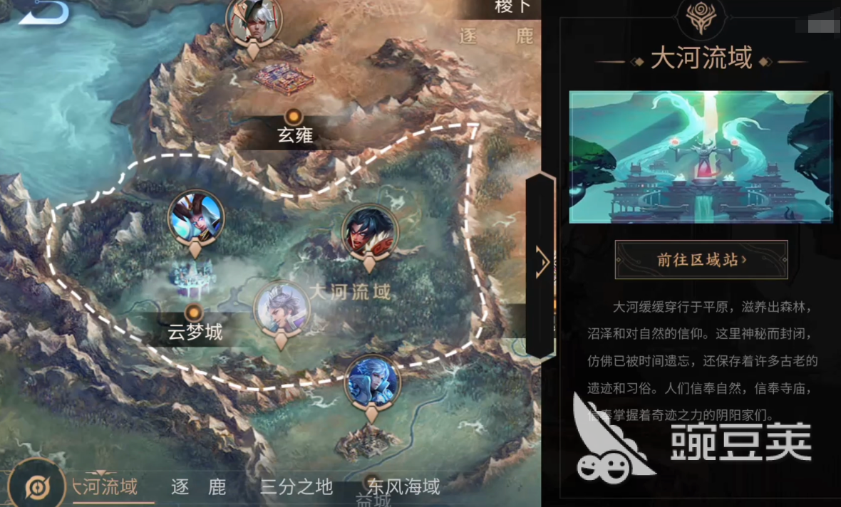 从地图分布来看,右侧有着东海区域,是宫本武藏等英雄栖息地,给要是继续向上推进就能抵达建木区,这里安置了神魔的角色,向着中心地图聚集会发现三大主要区域。再看河洛北荒云中区域,我们之前熟悉的姜子牙,项羽等英雄就是在这里。整个大部被分割成多个板块,每个区域都设计了于主题相符的角色阵营,玩家可以在每个区域自由的探索,找到熟悉的感觉。