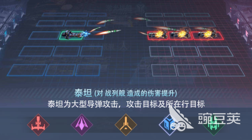 泰坦星舰是大范围覆盖型群攻核心,搭载多联装重型导弹系统,可对整行单位实施饱和打击。其输出覆盖面积为当前所有舰种之最,特别适配敌方横向布阵密集的战况。唯一被护卫舰克制,其余单位均无法对其形成有效压制。后期可通过属性成长进一步提升群体伤害,最佳释放位置为敌方单位数量最多的行对应格点,确保火力利用率最大化。
