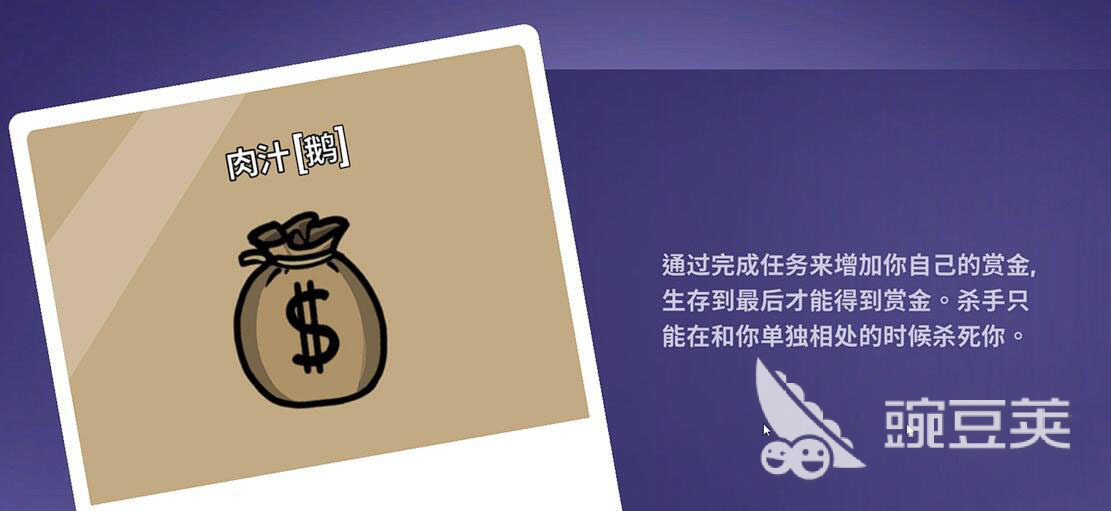 肉汁玩家的核心目标是存活至终局。只要成功活到最后,即可获得固定数额的任务奖励(即文中所称“赏金”)。值得注意的是,该奖励并非由个人独占:若肉汁被鸭子击杀,则全部赏金归属击杀者;若被其他好人误杀,则赏金将随机分配给参与击杀的多名玩家,无固定比例或优先级规则。